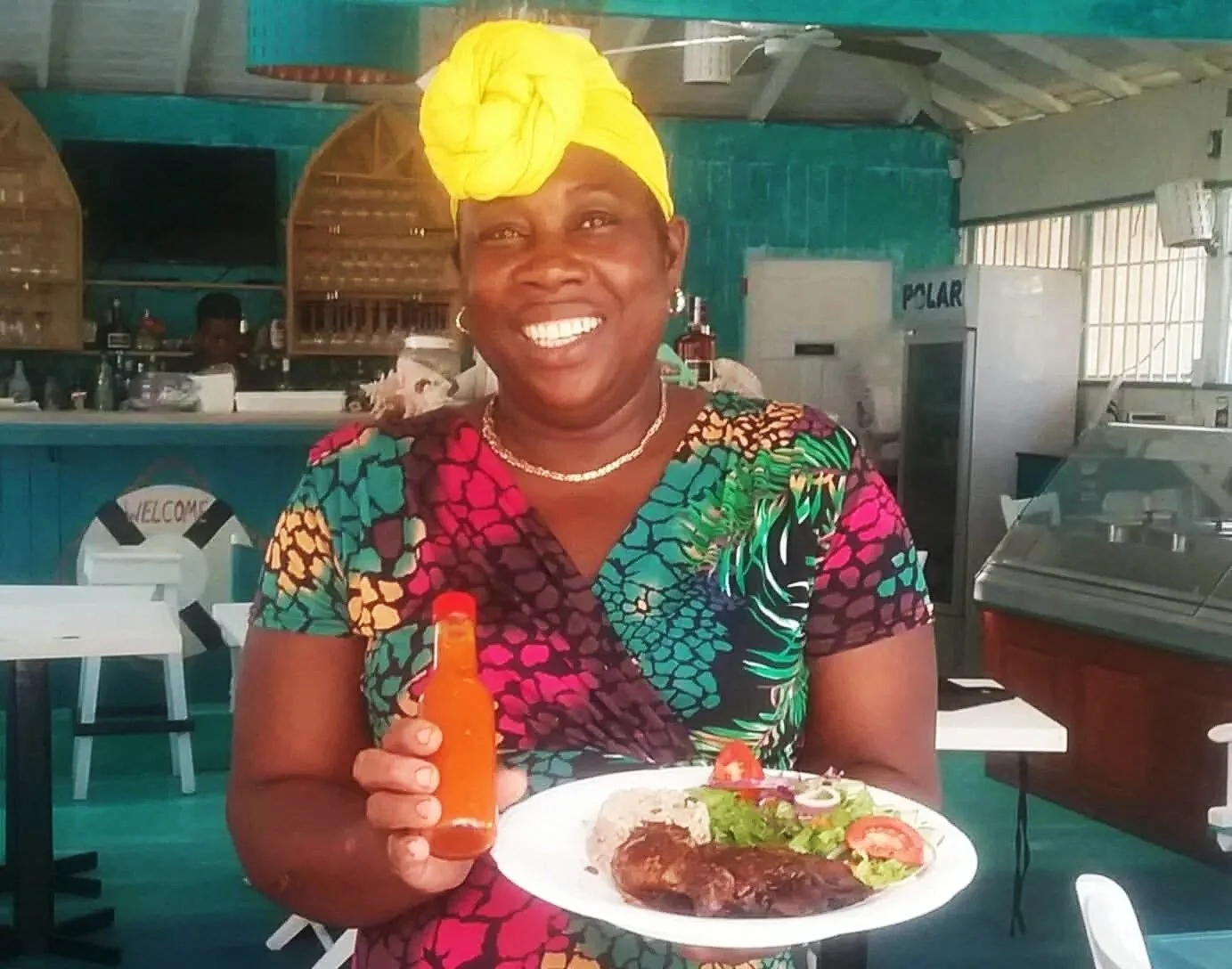 Enjoy dining with beautiful views of the tranquil salt pond—and bring home a taste of Antigua with a bottle of Sandra’s Famous Hot Sauce.